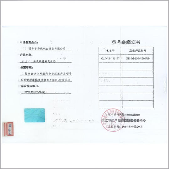 型号备案证书1
